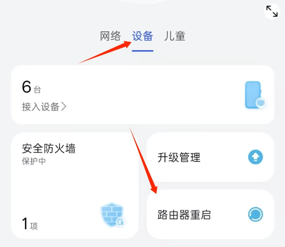 手机APP重启路由器:单击设备 -> 路由器重启 ,确定重启即可。